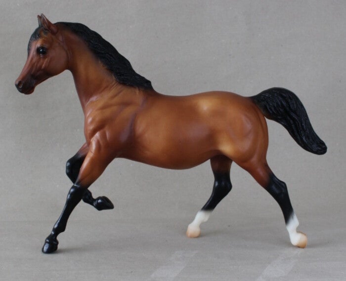 Hand-painted with dry pastels and acrylics. The figurine is protected with a satin varnish. The eyes, nostrils, and hooves are glossy. The Breyer logo has been removed.