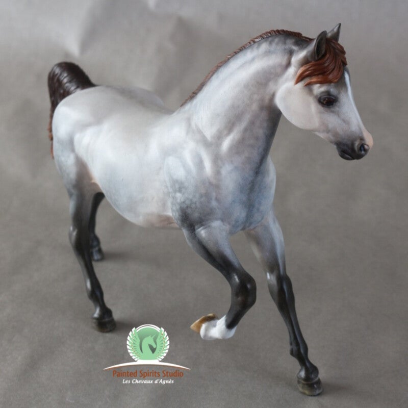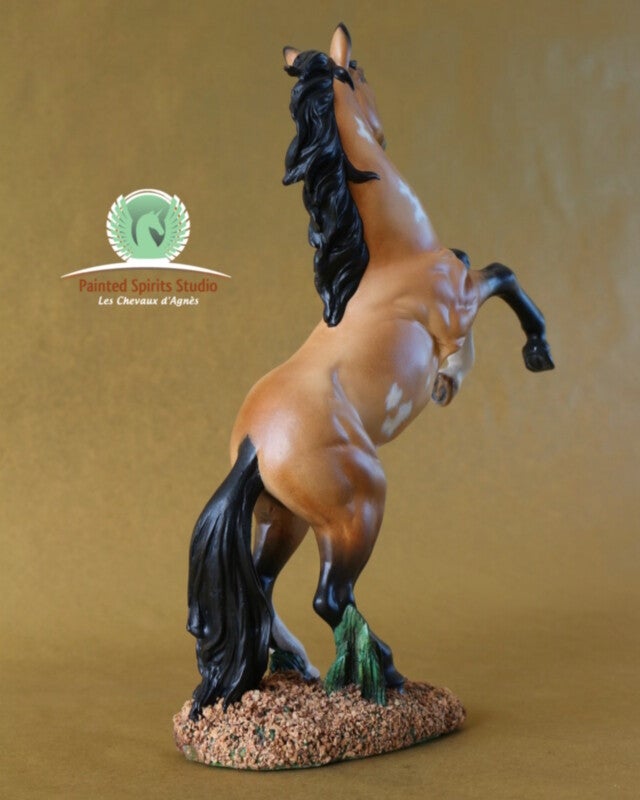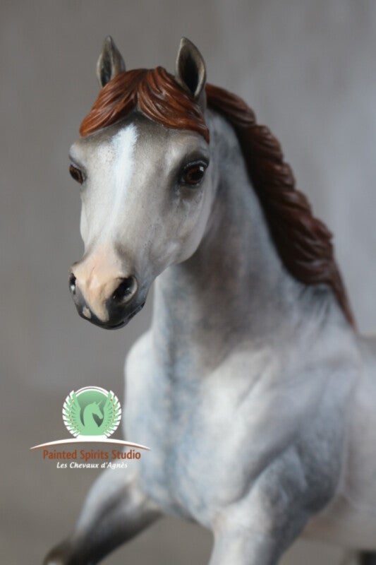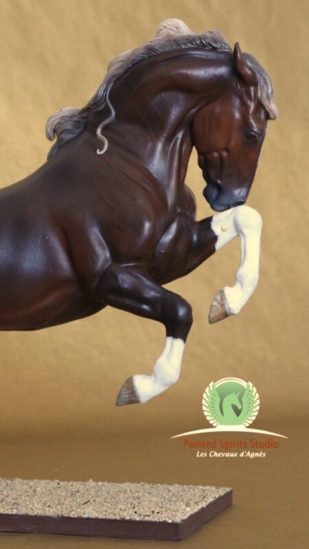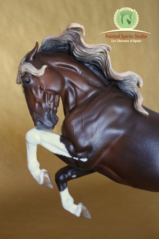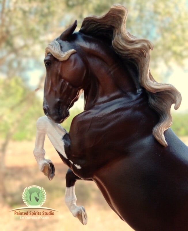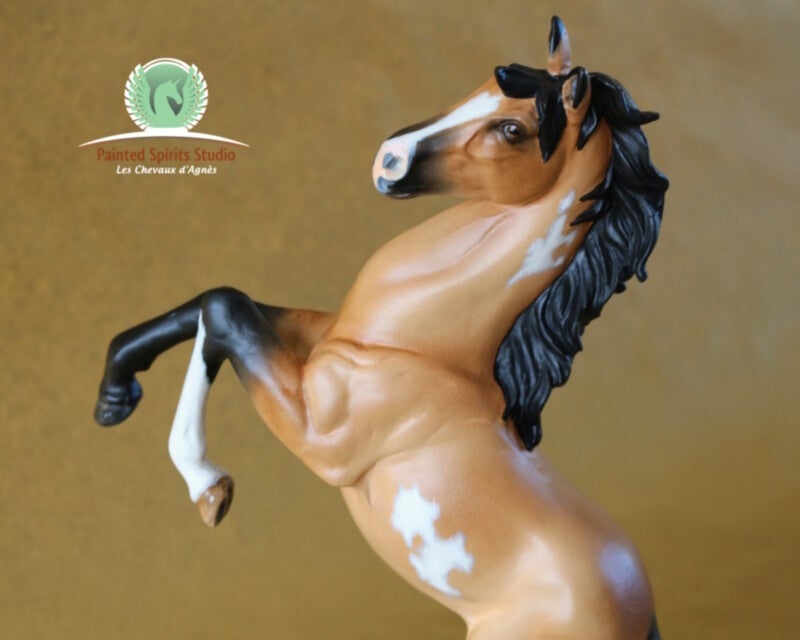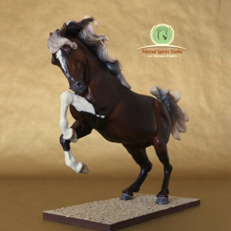 Les figurines sous-couchées en blanc sont prêtes à peindre. Le prix inclut la préparation et le sous-couchage. Le Breyer Running Stallion est entièrement customisé (crins, oreilles et sabots par Studio Valran).