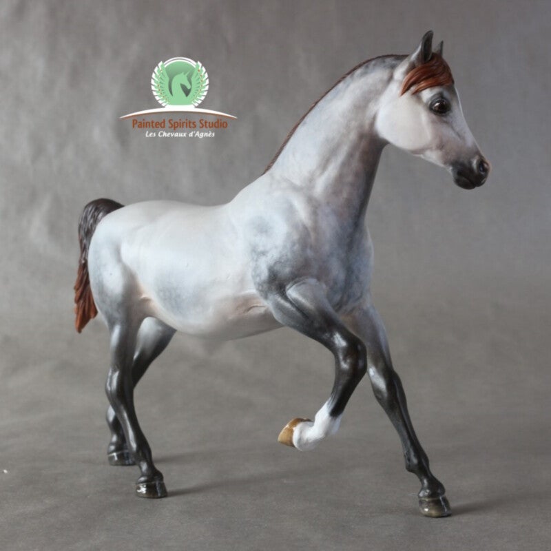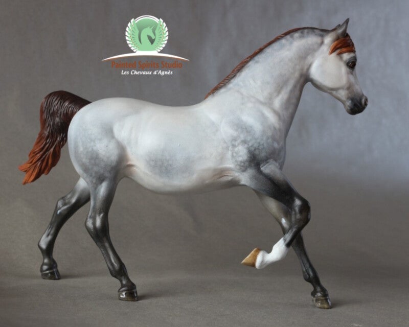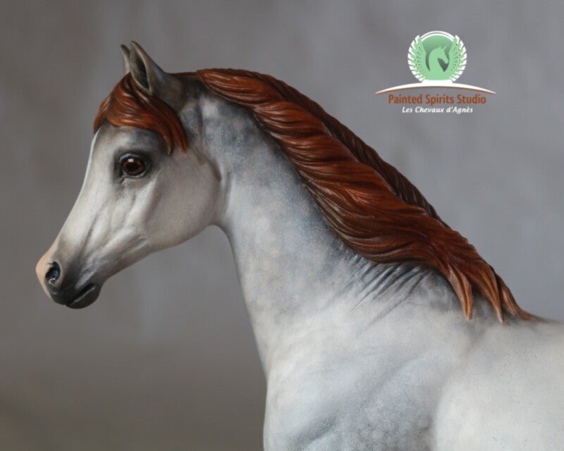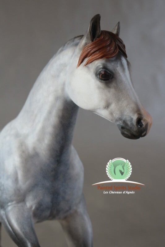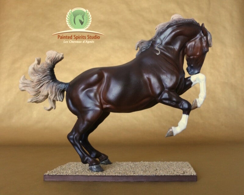 The white-primed figurines are ready to paint. The price includes prepping and primer. The Breyer Running Stallion is fully customized (mane, tail, ears and hooves by Studio Valran).
